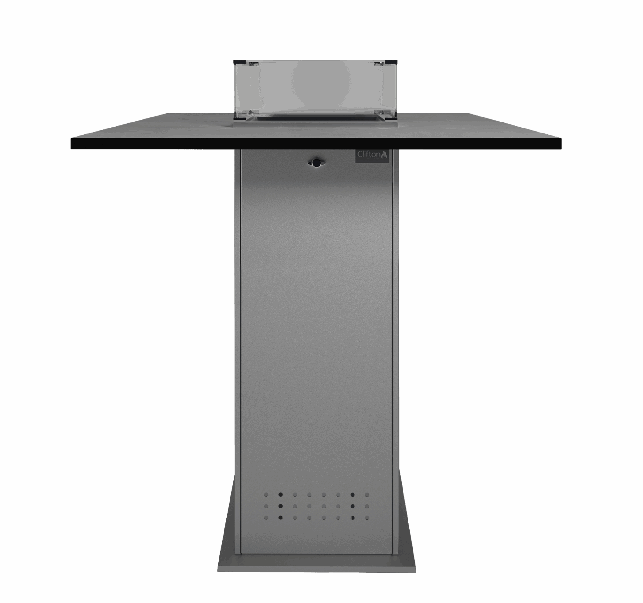 Der Kamin lässt sich flexibel mit verschiedenen Tischplatten-Varianten kombinieren, sodass du ihn perfekt an deinen persönlichen Stil und dein Outdoor-Setup anpassen kannst.